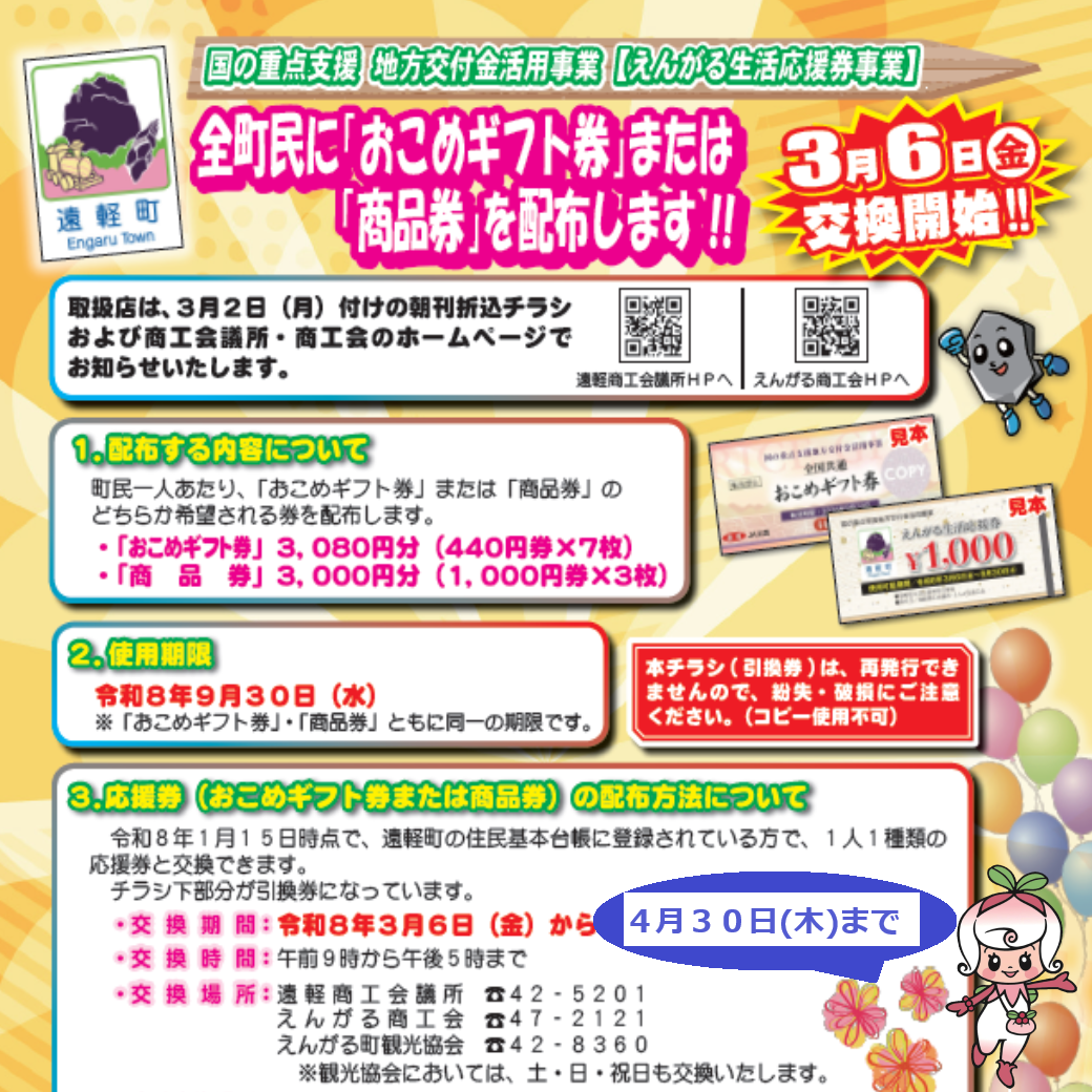 えんがる生活応援券の引換期間を延長します!