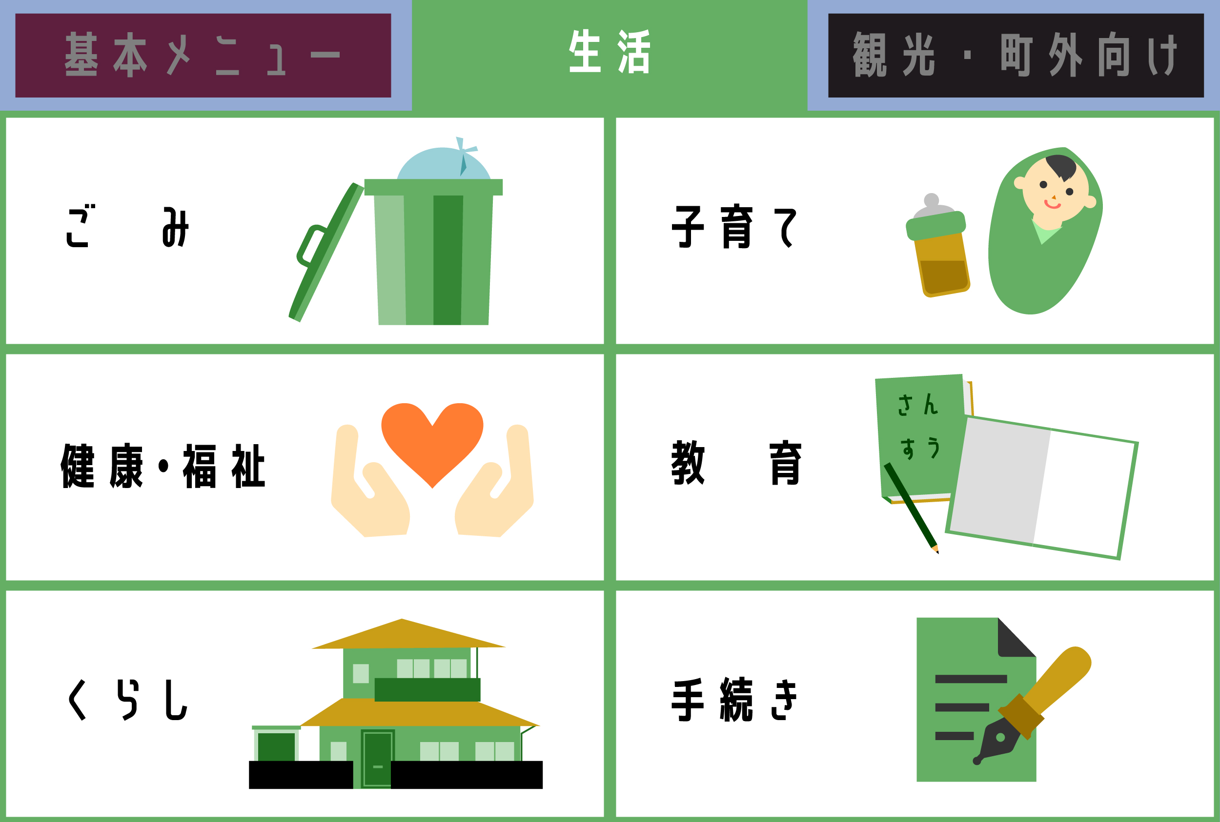 【生活】生活をサポートするメニューを簡単に探せます。