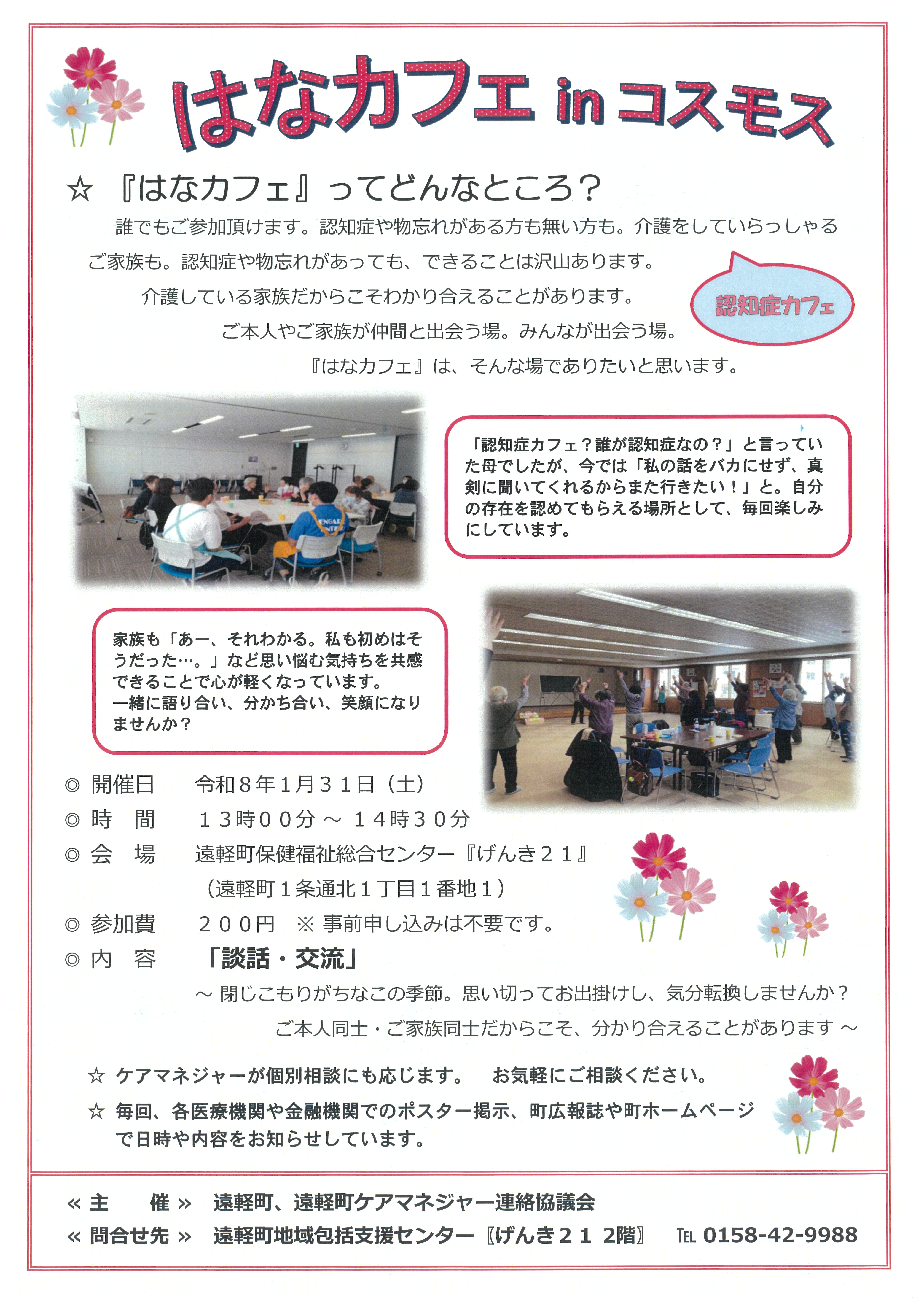 『はなカフェ in コスモス』(認知症カフェ)開催のお知らせ