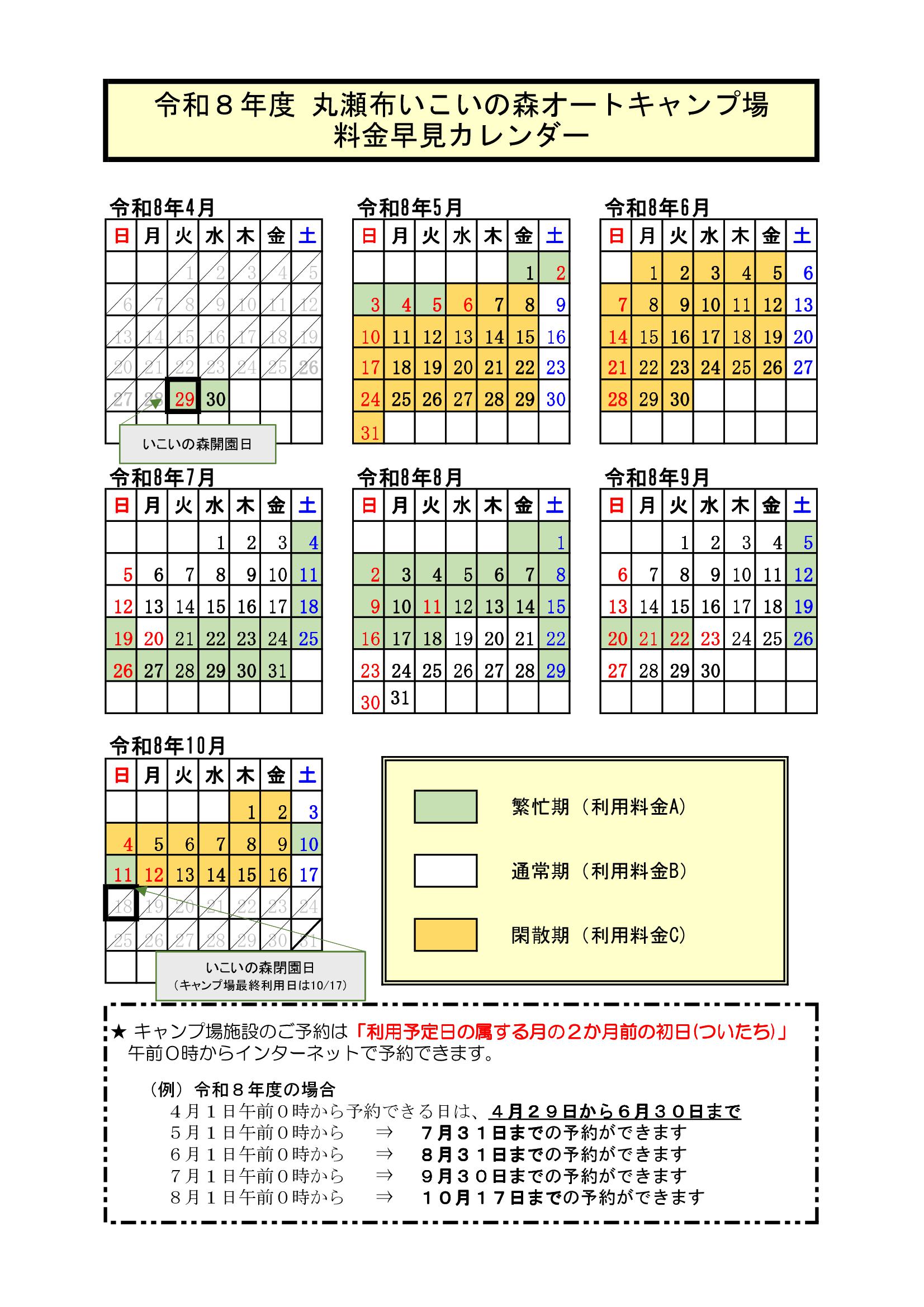 ※ いこいの森キャンプ場は全ての区画(フリーサイト含む)がインターネット予約制です。