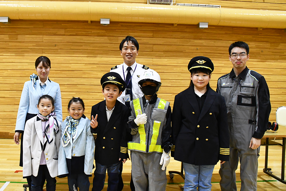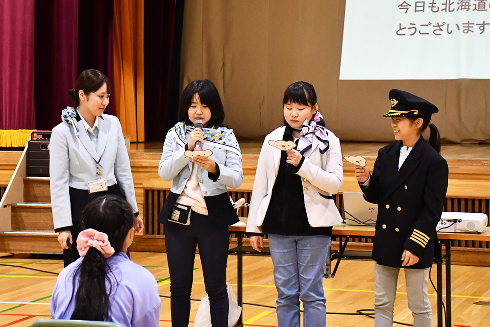 これは、子どもたち一人一人の社会的な自立と職業的な自立に向けて能力や態度を育てるキャリア教育の一環として、航空会社AIRDO主催にて行われたものです。