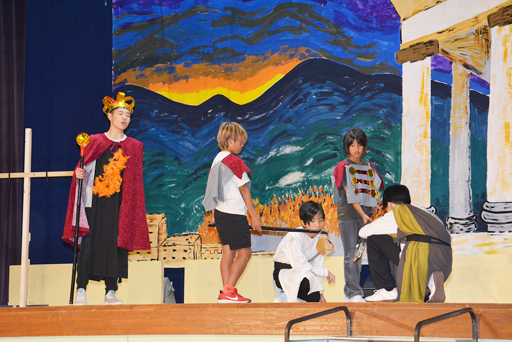 このうち、保育所園児による「チェケマッチョ!」では園児がマッチョの装いをし、会場が笑いに包まれました。また、生田原小学校の児童も2学年合同で演劇や楽器演奏を行い、なかでも、5・6年生による演劇「走れメロス」では、それぞれが難しい役を演じ切り、観衆から盛大な拍手が送られていました。