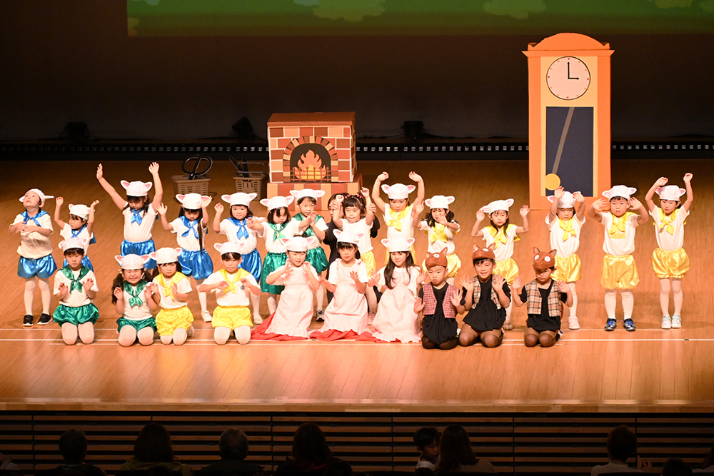 開催にあたり、二瓶雄介子育て支援課長から「子どもたちはご家族の皆様に観てもらうために一生懸命練習に取り組んできました。大きな舞台で頑張る子どもたちの姿をご覧いただき、温かい拍手をお願いします」との挨拶があり、おゆうぎかいが始まりました。