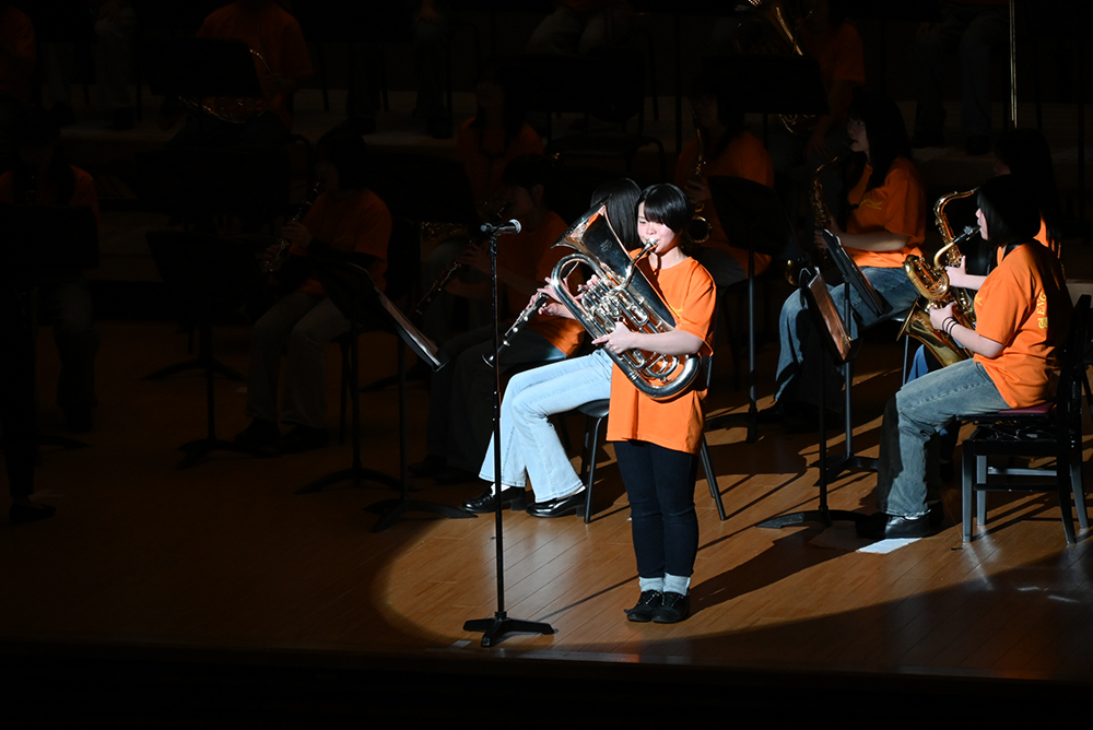 第3部では、「美女と野獣」「ピンク・レディ・メドレー」などを演奏したほか、本演奏会をもって部活を引退する3年生が次々とソロを披露する場面もありました。