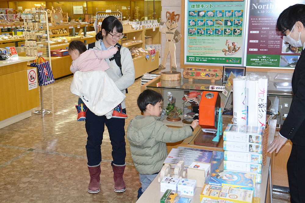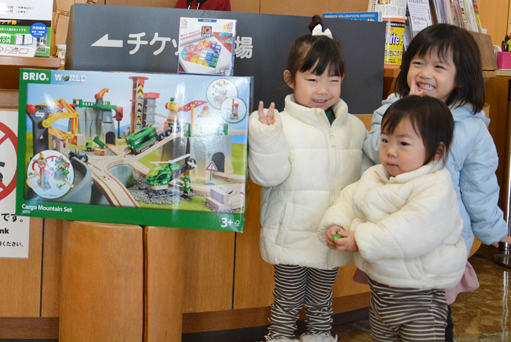 木のおもちゃを中心とした素敵な景品を目当てに、午前10時の開館と同時にたくさんの家族連れが来館。新年の運試しとも言える抽選会は、見事特賞や1等賞を当てて歓声が上がるなど、大いに盛り上がっていました。