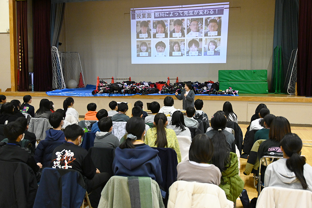 1月23日、遠軽中学校(八木沼明博校長)で遠軽小学校(可児隆洋校長)と東小学校(長谷博文校長)の6年生が1日体験入学を行いました。