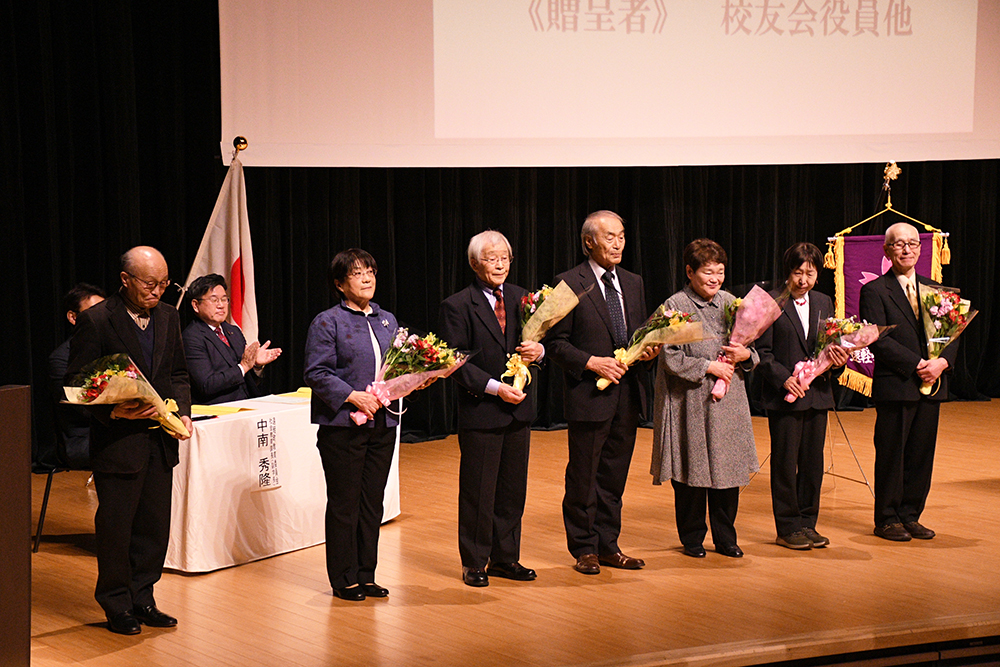 式では、同大学学長の佐藤祐治教育長が卒業証書や修了認定証、皆勤賞の賞状を授与。また、卒業生7人には校友会から花束が贈呈されました。