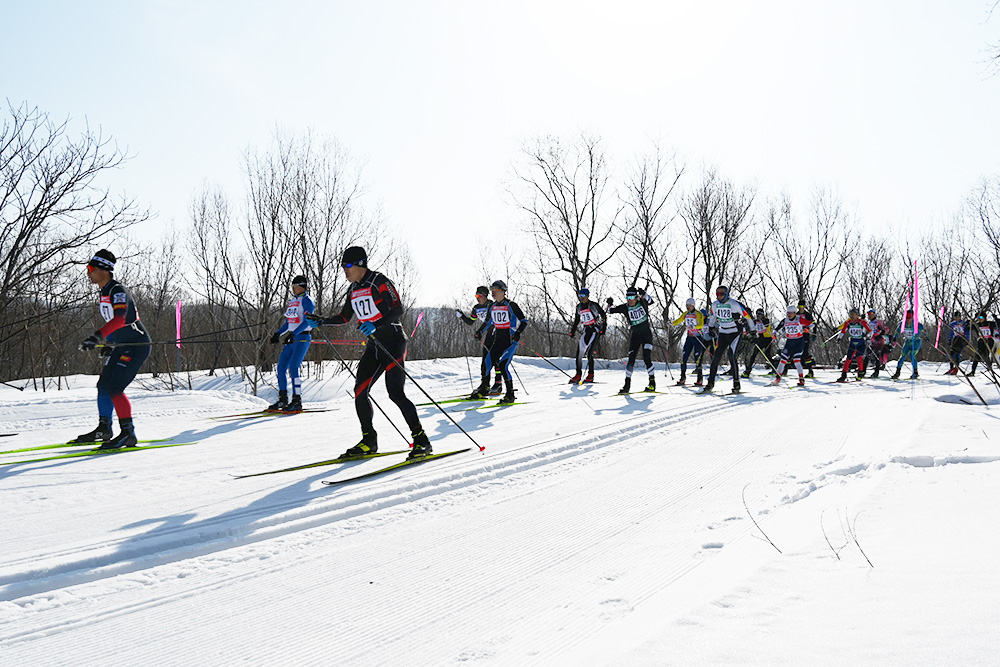雪不足で3年連続規模を縮小して行われた今大会は、国内最長の80キロコースを中止し、24キロメートルの湧別コースや10キロメートル、3キロメートルの個人種目とスキー駅伝が行われました。