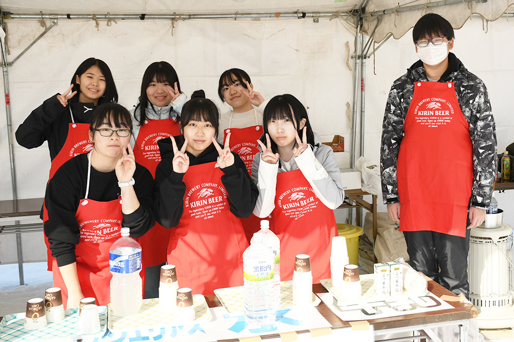 給食を手伝った遠軽高校ボランティア部の皆さん