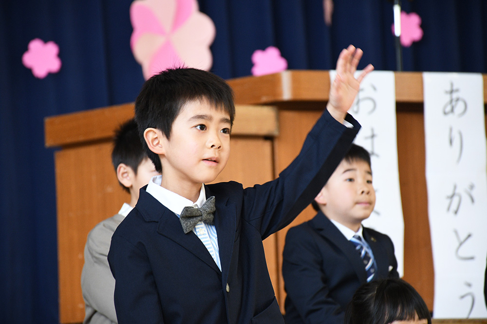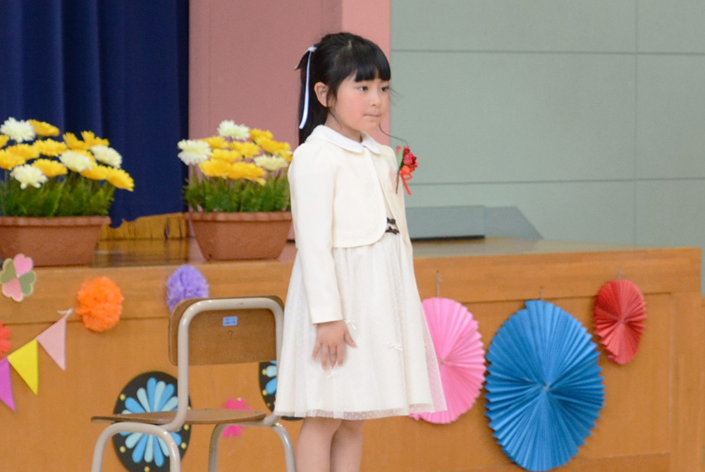 式の終盤では緊張もほぐれ、先生に名前を呼ばれると元気に「はい!」と返事をしていました。