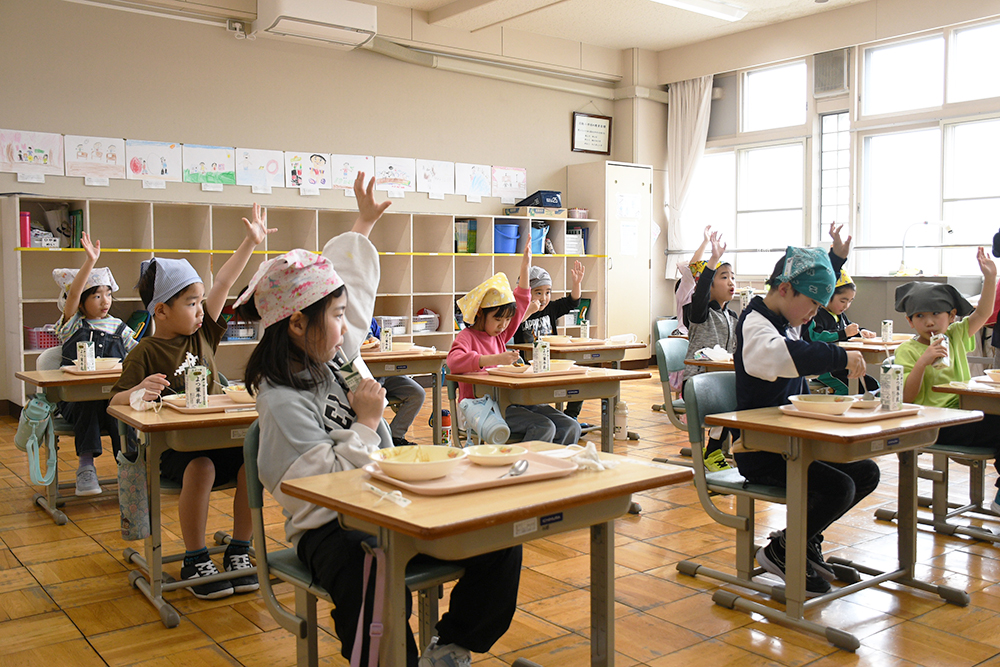 この春、町内の小学校に入学した新1年生たちの学校給食が4月13日から始まりました。
