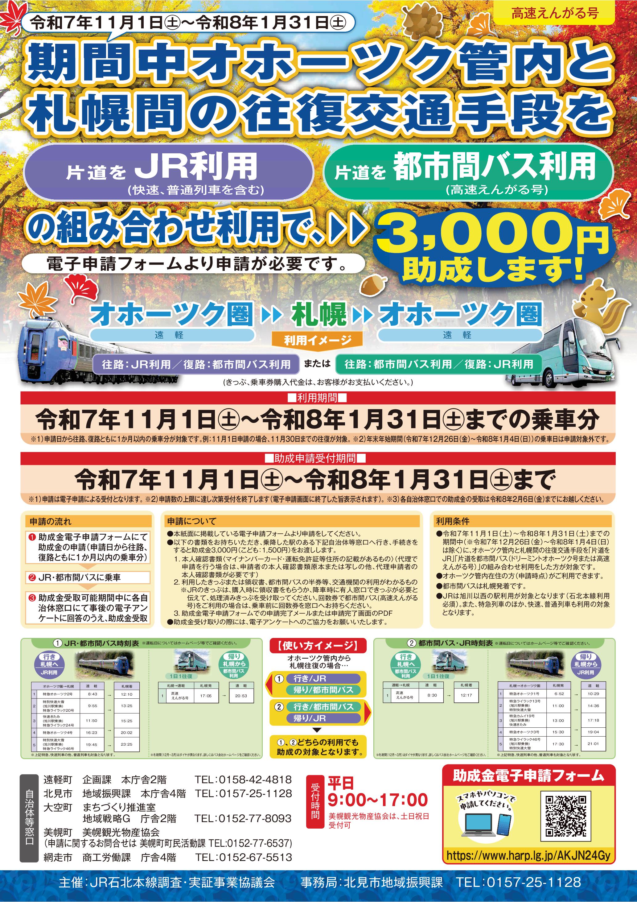 遠軽町石北本線町外者利用助成金について