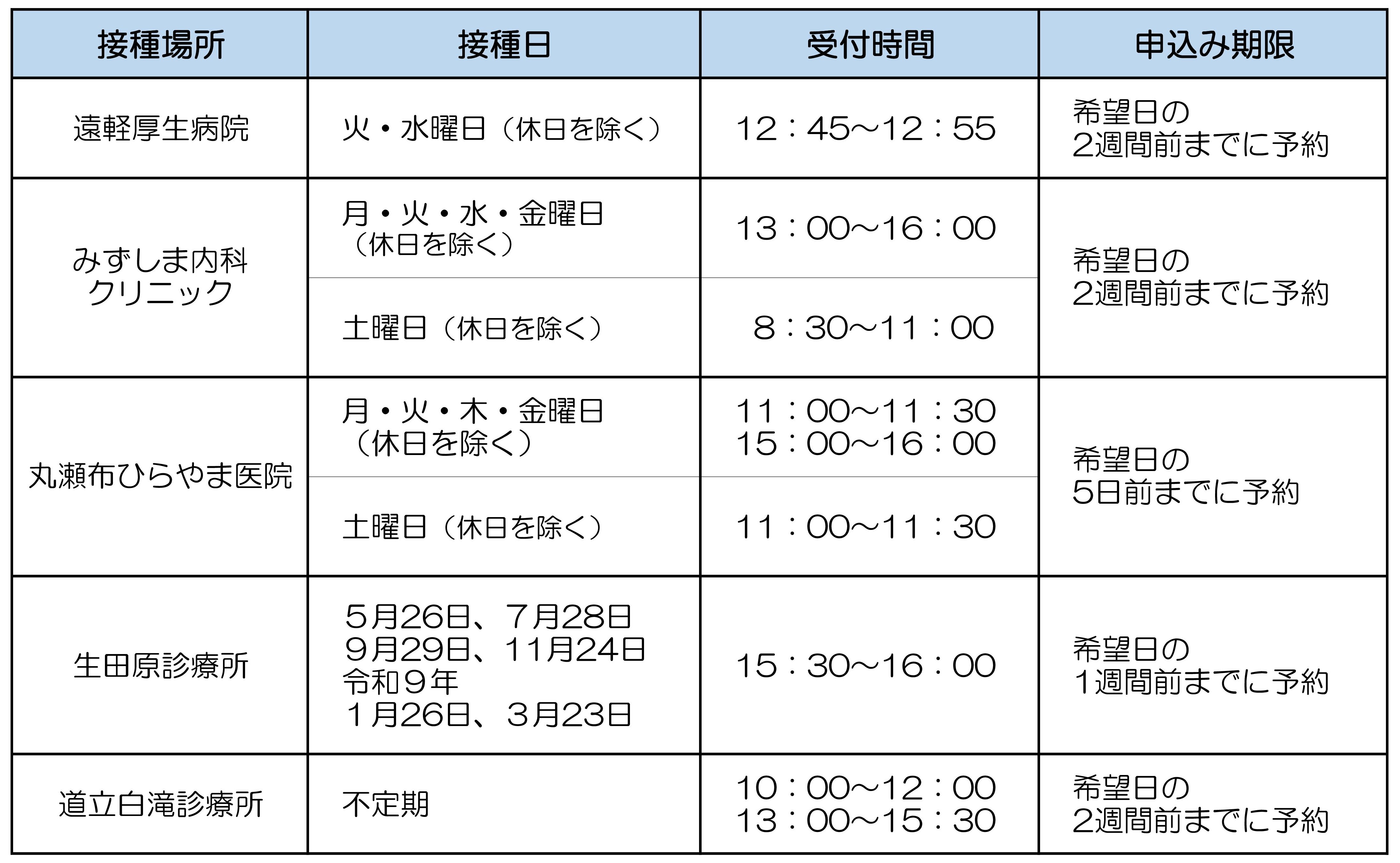 保健福祉課または丸瀬布支所に予約が必要です(注意:病院に直接予約することはできません)。