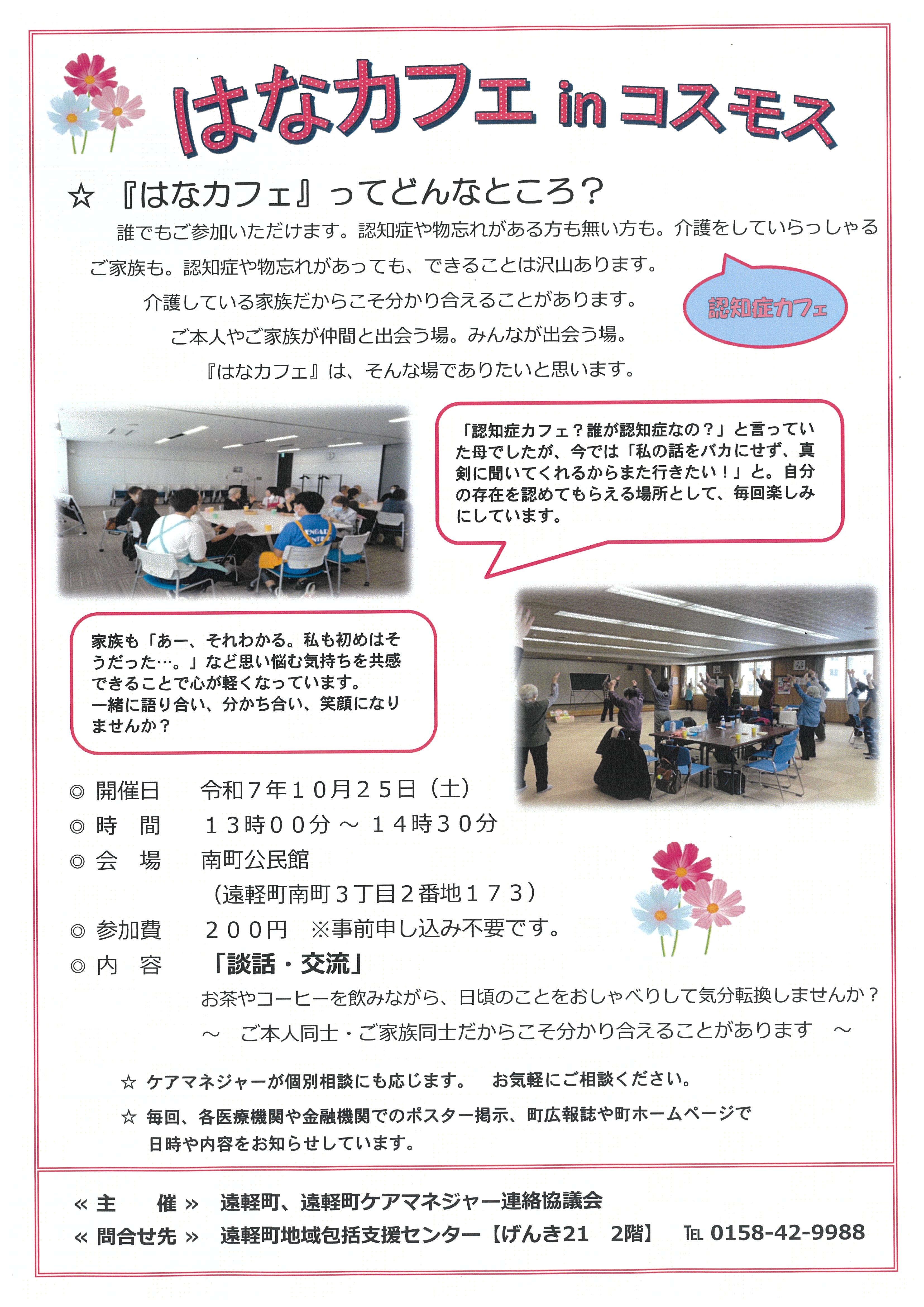 『はなカフェ in コスモス』(認知症カフェ)開催のお知らせ