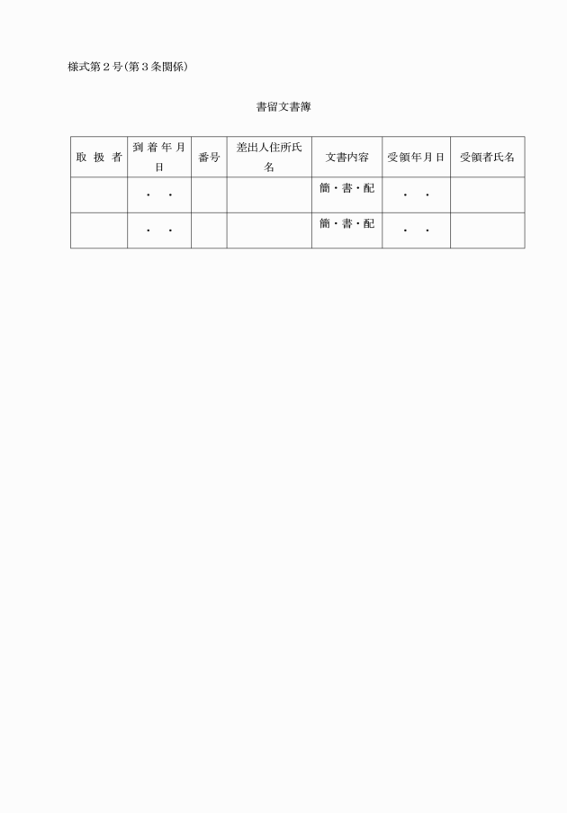 2 課及び所(以下「課等」という。)には、文書番号簿(様式第4号)を備えることができる。