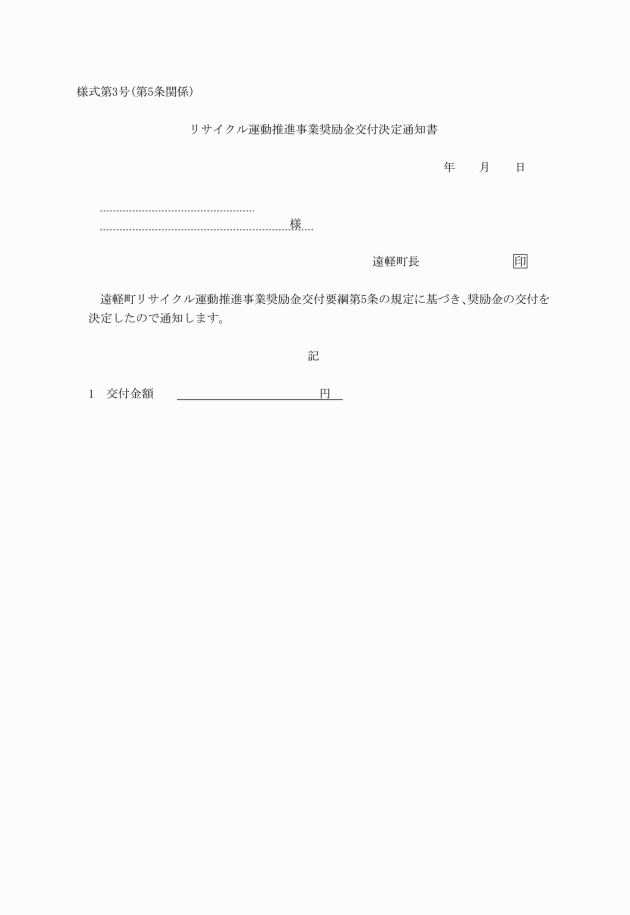 ○遠軽町リサイクル運動推進事業奨励金交付要綱