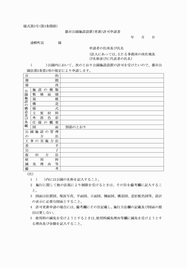 都市公園施設設置(更新)許可申請書(様式第3号)