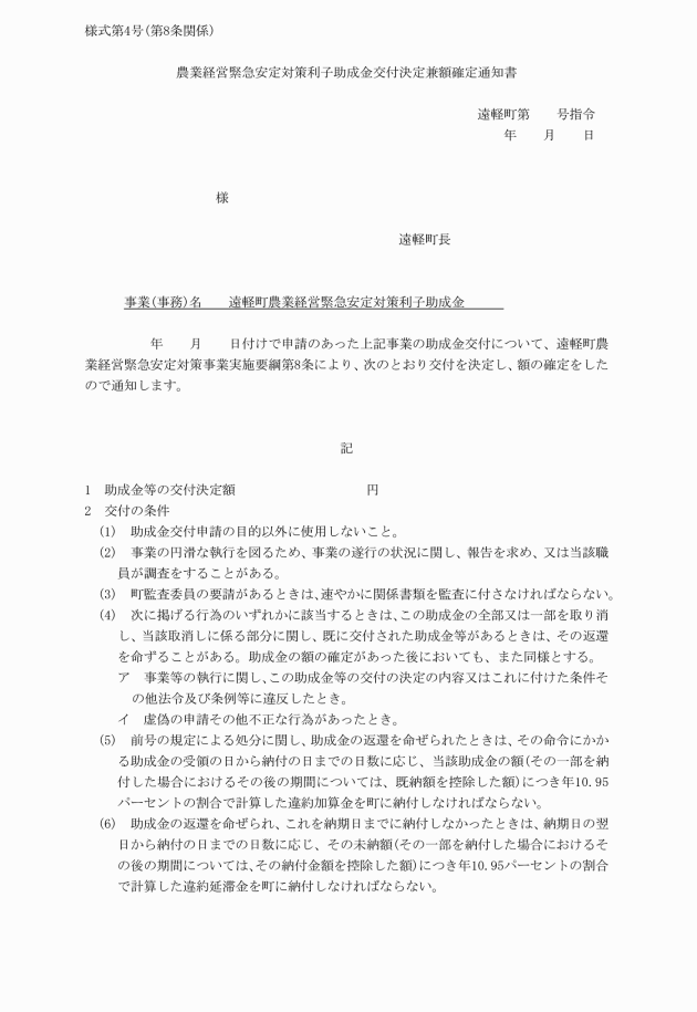第9条 利子助成を受けようとする農業者は、農業協同組合に利子助成の承認、申請及び受領を委任状(様式第5号)により委任(以下「農業者の委任」という。)するものとする。