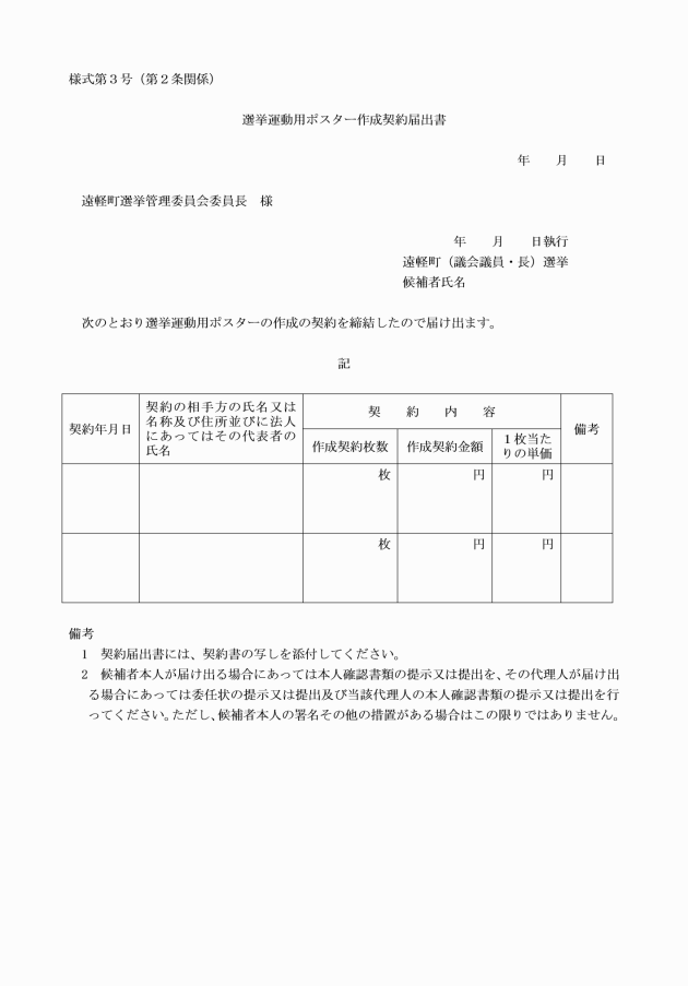 2 この告示は、条例の施行の日以後その期日を告示される選挙について適用する。