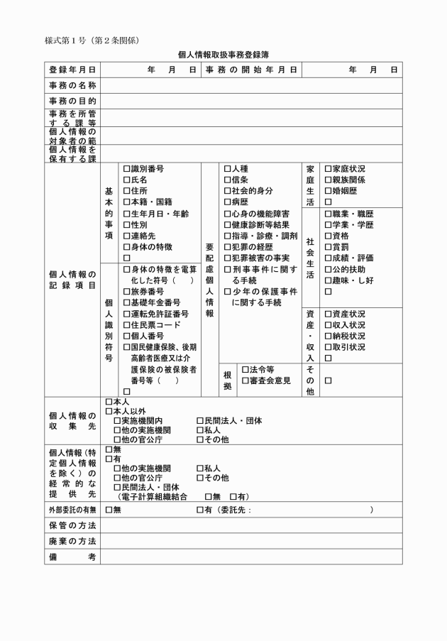 第3条 法第75条第1項の規定による帳簿は、個人情報ファイル簿(様式第2号)とする。