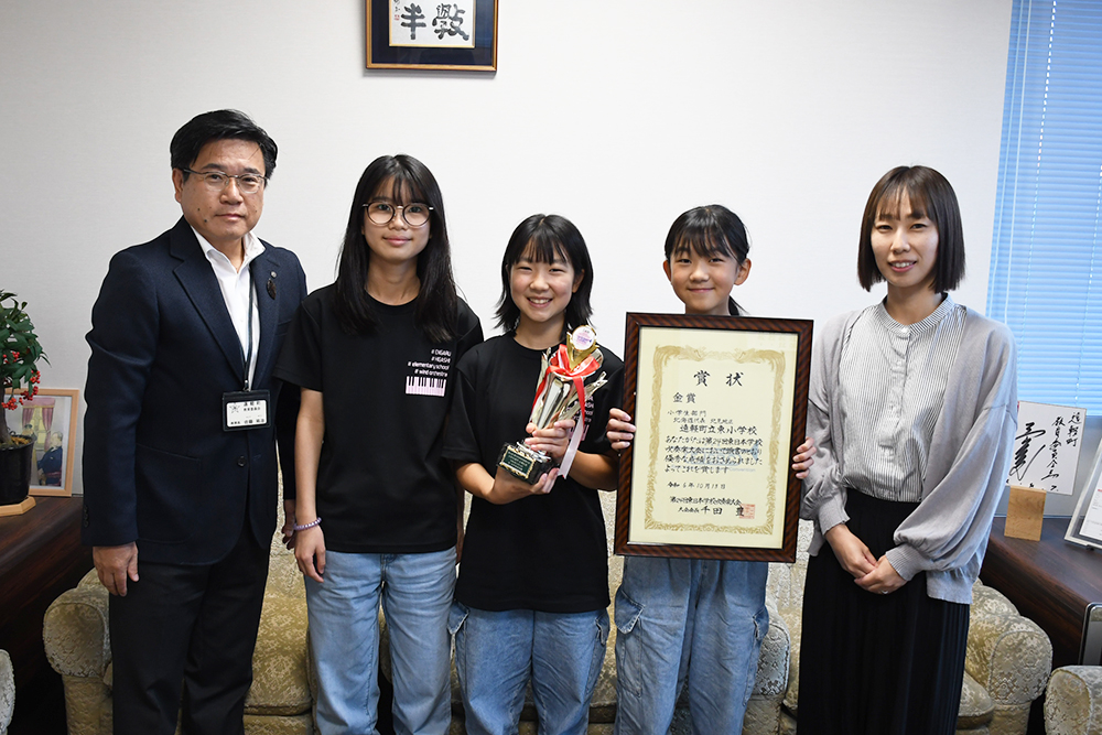 東日本代表に選出~東小学校の児童が東日本学校吹奏楽大会を前に表敬訪問