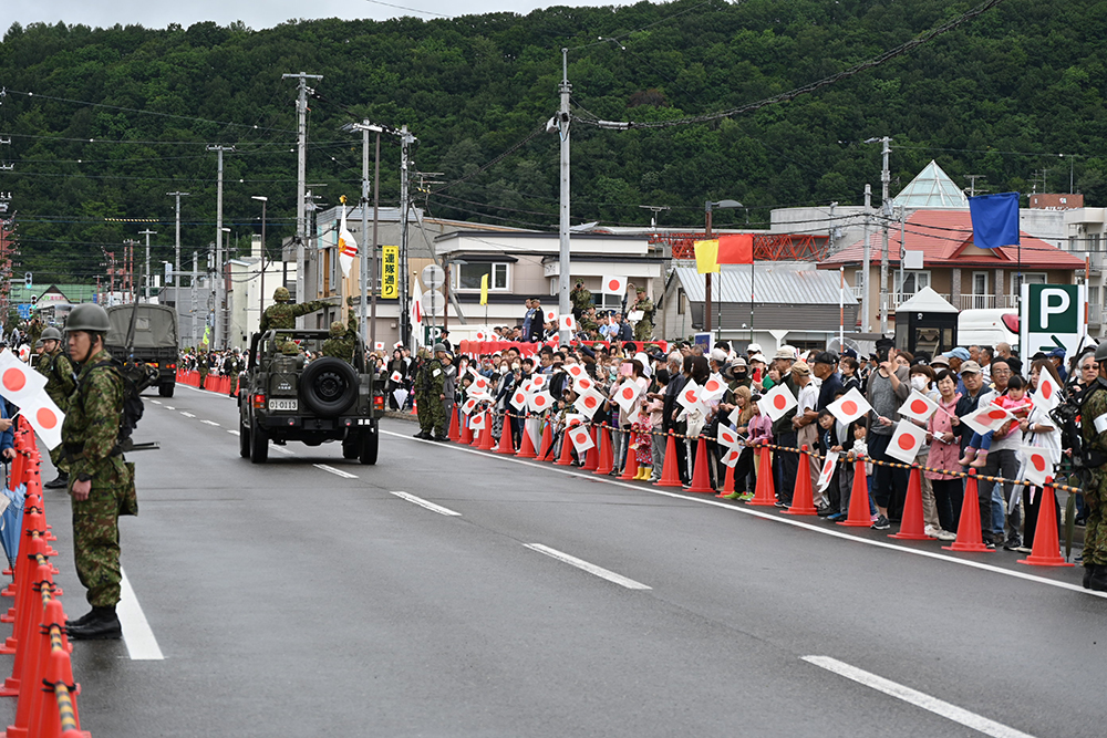 パレードの前には、遠軽駐屯地創立74周年記念市中パレード協賛会会長の佐々木修一遠軽町長が「日本を取り巻く非常に厳しい国際環境の中、パレードを実施していただき感謝いたします。自衛隊と住民が密接になるために始めたこのパレードも今回で7回目となります。自衛隊が災害等から地域を守っていく、その姿を見せるパレードとなりますのでぜひご覧ください」と挨拶。