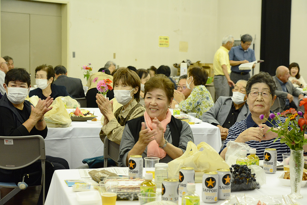 この日の交流会では、遠軽警察署白滝駐在所加藤巡査部長による講話で交通事故と特殊詐欺から身を守る方法が紹介されたほか、保育所の子どもたちのおゆうぎやお楽しみ歌謡ショーと題したカラオケなどの余興を楽しみ、食べたり飲んだりしながら、久しぶりに会う友人たちと近況報告や昔話をしていました。