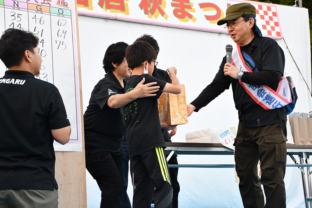 ビンゴ大会では、先着100人の参加者がステージ付近に集まり、子どもも大人も白熱した様子で自分の番号が呼ばれるのを待っていました。
