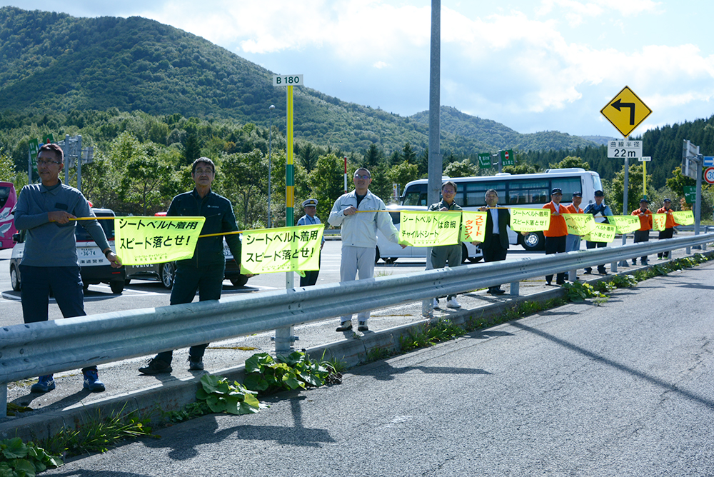 9月19日、道の駅しらたきで遠軽地区交通安全協会白滝支部(矢木優支部長)によるセーフティコールが行われました。