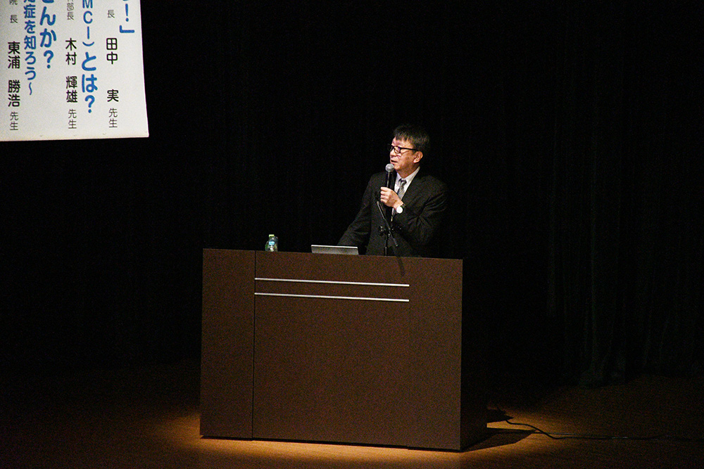 講座は2部に分かれており、「軽度認知障害(MCI)とは?」をテーマに北見赤十字病院脳神経外科部長の木村輝雄先生が、「もの忘れしませんか?~もっと認知症を知ろう~」をテーマにコスモスクリニック院長の東浦勝浩先生が講壇に立ちました。