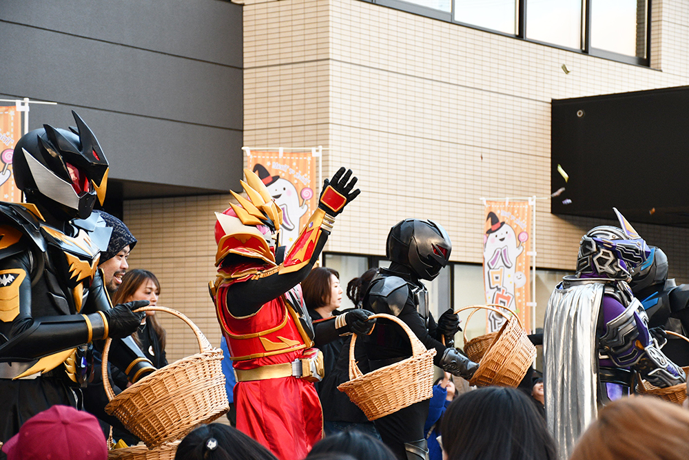 アニメキャラクターや童話の登場人物など、思い思いの仮装に身を包んだ人たちが歩く会場には、たくさんの露店やキッチンカーが出店。場内ステージでは、地元ダンスチームによるダンス披露や、太陽戦士エンガイザーとのじゃんけん大会などが行われ、子どもも大人も大きなにぎわいを見せていました。