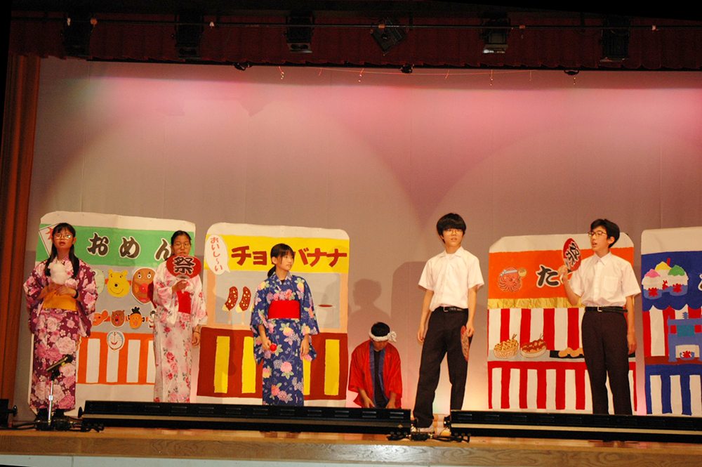 演劇「夏色をさがして」では、全校生徒15人がキャスト・裏方全てをこなし、等身大の友情物語を熱演。