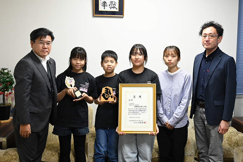 この日の結果報告では、部長の清水琉偉(るい)君が「大会では、悔いのない演奏をし、東小サウンドを会場に響かせて金賞を取ることができました」と話し、佐藤教育長は「素晴らしい演奏を披露してくれました。この結果は皆さんの将来の糧になりますので、自信を持って今後も成長していってください」と賛辞とねぎらいの言葉を送っていました。