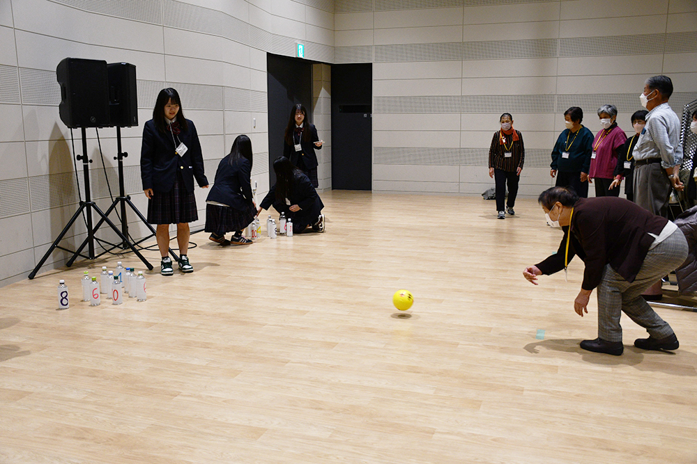 これは、福祉関係の進路を考えている遠軽高校の生徒たちが、自分たちで用意してきたゲームを瞰望大学の学生に説明し、一緒に行うことで、レクリエーションの進行を練習をしつつ、世代間の交流を図るために実施されたものです。