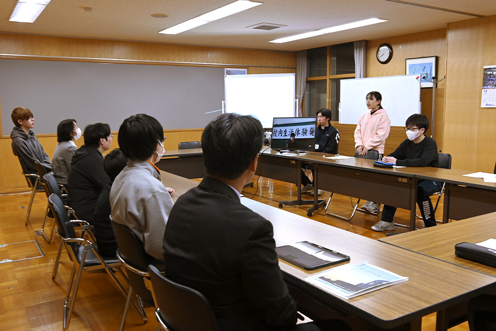 懇親会では生徒会の生徒が学校生活について話しました