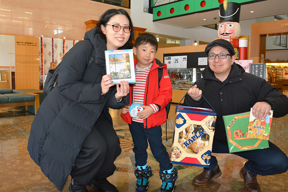 木のおもちゃを中心とした素敵な景品を目当てに、午前10時の開館と同時にたくさんの家族連れが来館。新年の運試しとも言える抽選会は、見事特賞や1等賞を当てて歓声が上がるなど、大いに盛り上がっていました。