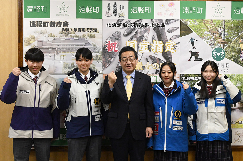 1月20日、「令和7年度全国高等学校総合体育大会 第75回全国高等学校スキー大会」(2月4日~8日、長野県)に出場する遠軽高校(尾形友秀校長)スキー部の生徒たちが佐々木修一遠軽町長を表敬訪問しました。