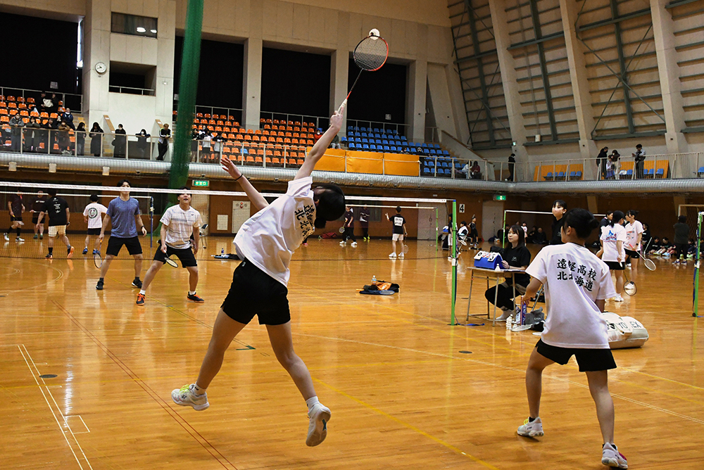 2月15日、遠軽町総合体育館で遠軽町バドミントン協会(吉川紘会長)主催による第27回えんがるバドミントン交流大会が開催されました。