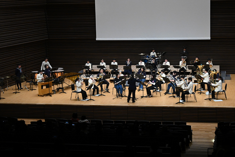 演奏会は2部構成で、第1部では「ゴールドラッシュ!」や「スペイン喜遊曲 管打8重奏」など、過去のコンクールやコンテストで挑んだ曲を中心に演奏しました。