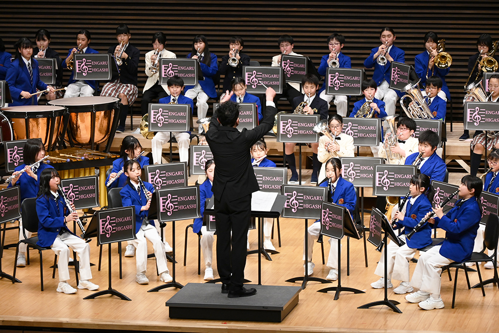 3部構成で行われたこの日の演奏会は、第1部に吹奏楽・アンサンブルステージ、第2部に東小OB・OGとの合同合奏、第3部にはポップスステージと、多彩な内容で行われ、児童たちはこれまでの感謝の気持ちを観客の皆さんに伝えようと演奏しました。